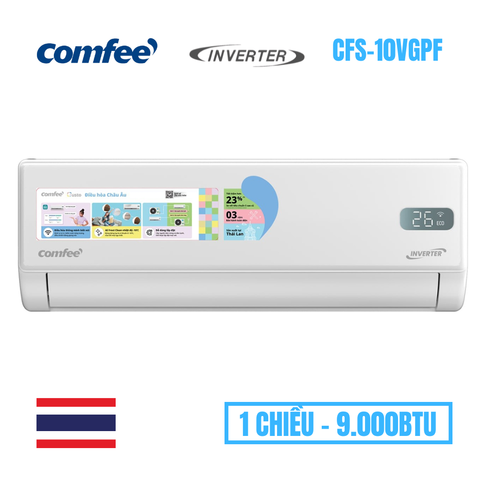 Máy lạnh Comfee Inverter 1 HP CFS-10VGPF là lựa chọn đáng cân nhắc cho không gian nhỏ cần làm mát nhanh, vận hành êm và tiết kiệm điện. Nhờ tích hợp hàng loạt tính năng thông minh như điều khiển giọng nói, kết nối điện thoại, cảm biến vị trí người dùng và chế độ ngủ tối ưu, sản phẩm mang đến sự tiện nghi vượt trội cho cuộc sống hiện đại.