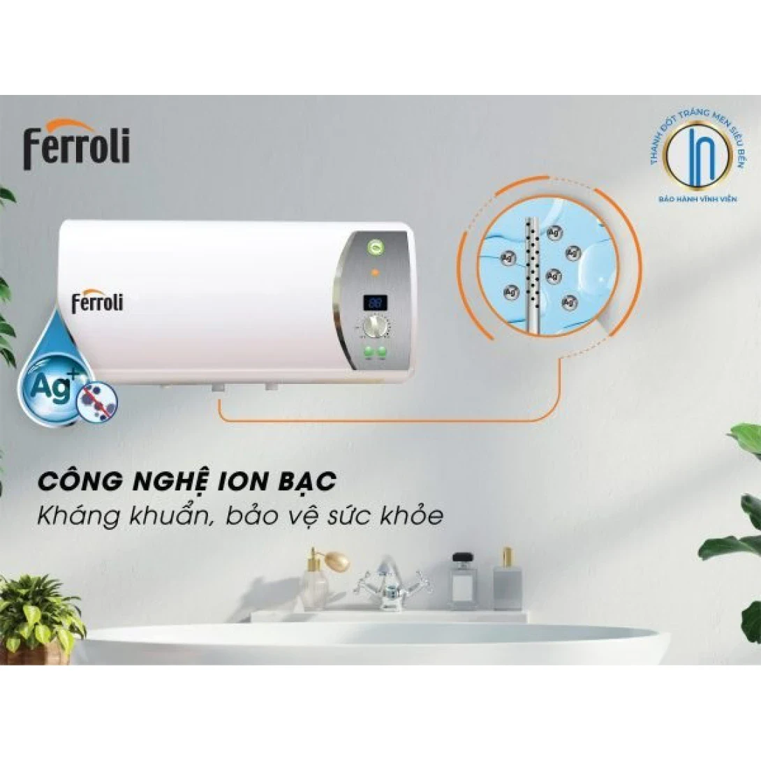 Nhờ đó, máy cung cấp nguồn nước sạch khuẩn và an toàn cho người sử dụng. Hệ thống tạo ion bạc trên máy nước nóng Ferroli có thể ngăn chặn và tiêu diệt đến 90% lượng vi khuẩn bên trong nước.